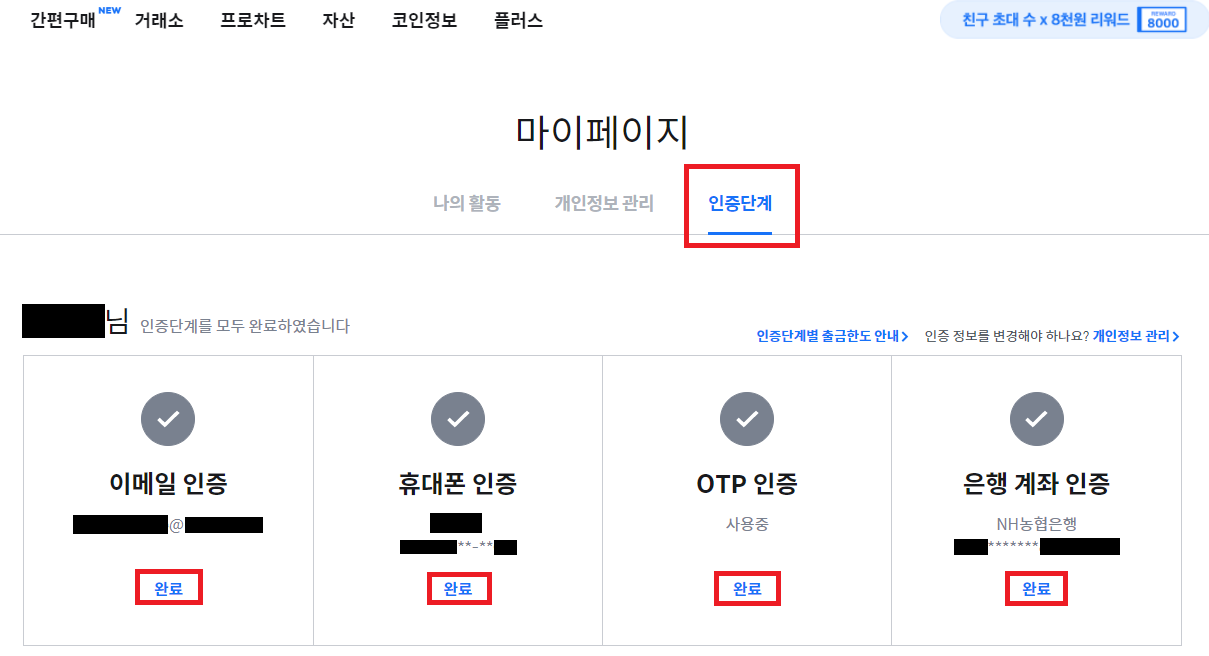 [마이페이지] - [인증단계]에서
