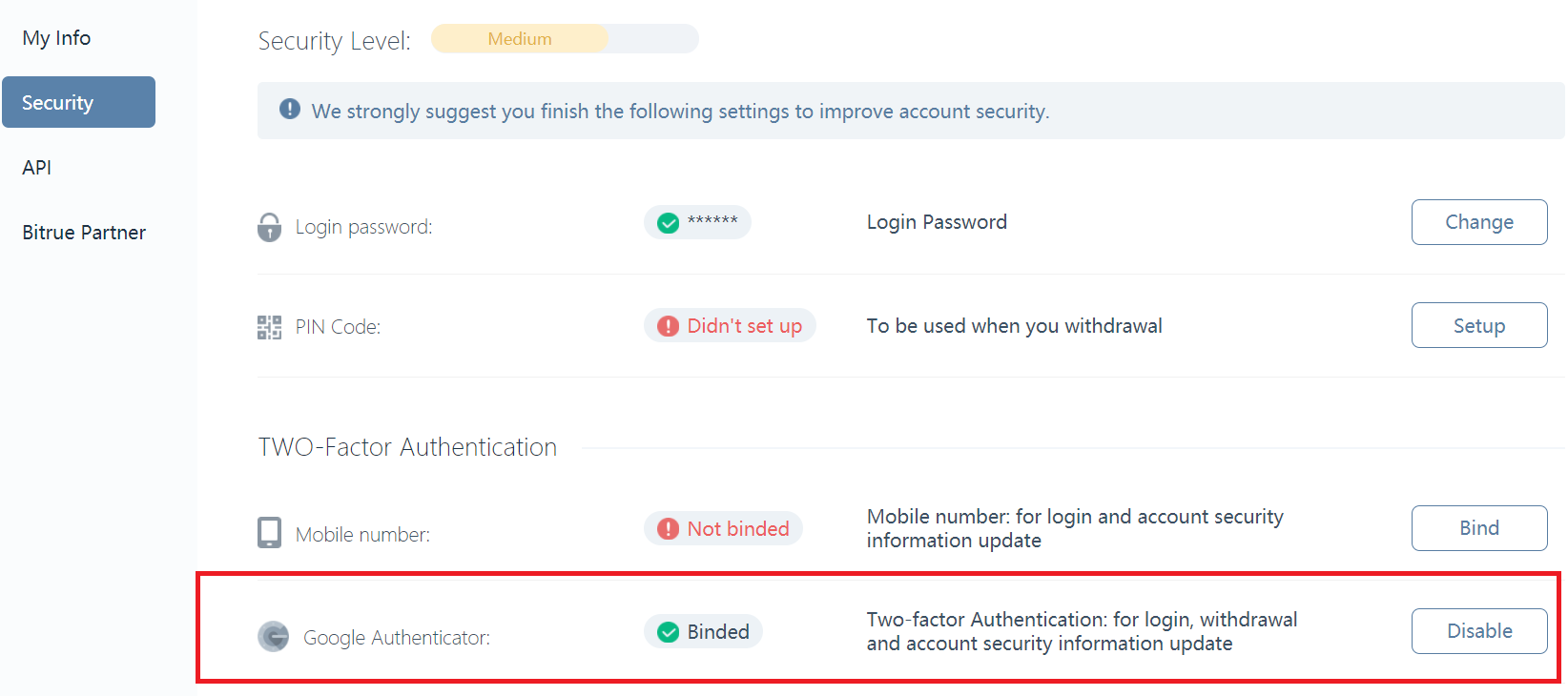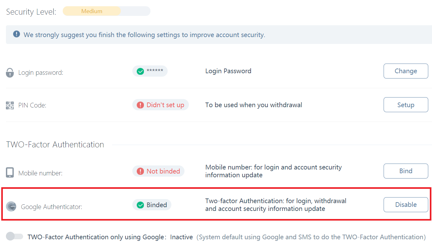 왼쪽 Security에서 젤 아래 Google Authenticator에서 등록버튼 누르면 된다.