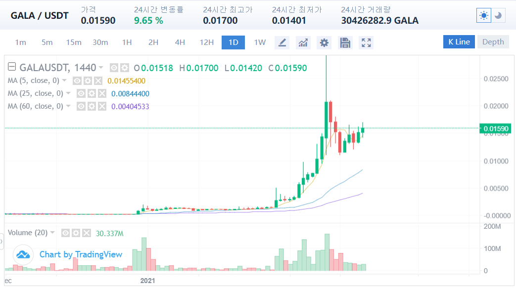 갈라코인(GALA)이 상장된 거의 유일한 거래소입니다. (현재기준)