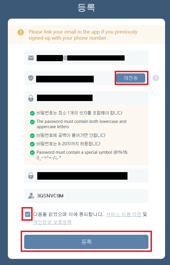 그리고 아래에 등록된 6자리 숫자를 입력하고 다음으로 넘어가자
