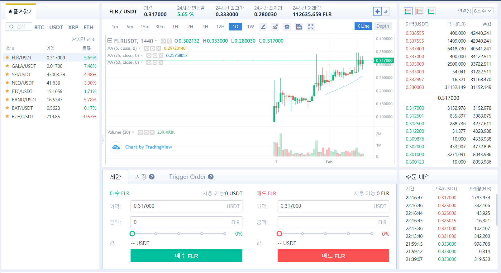 이 의미는 FLR(스파크) 코인을 USDT(테더)로 구매한다는 의미다.