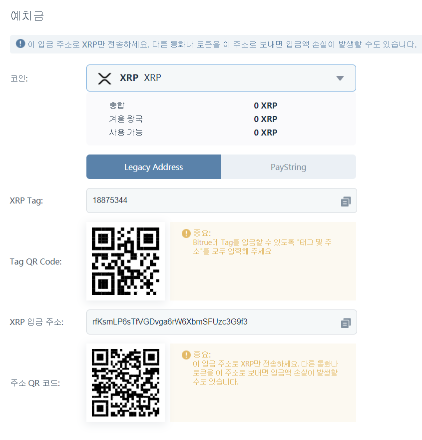 나의 경우 해외 거래소로 입금을 할때 주로 리플(XRP)로 주고 받는다.