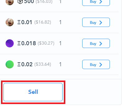 거기에 Sell 클릭하여 바로 팔 수도 있습니다. (시장가에 파는느낌)