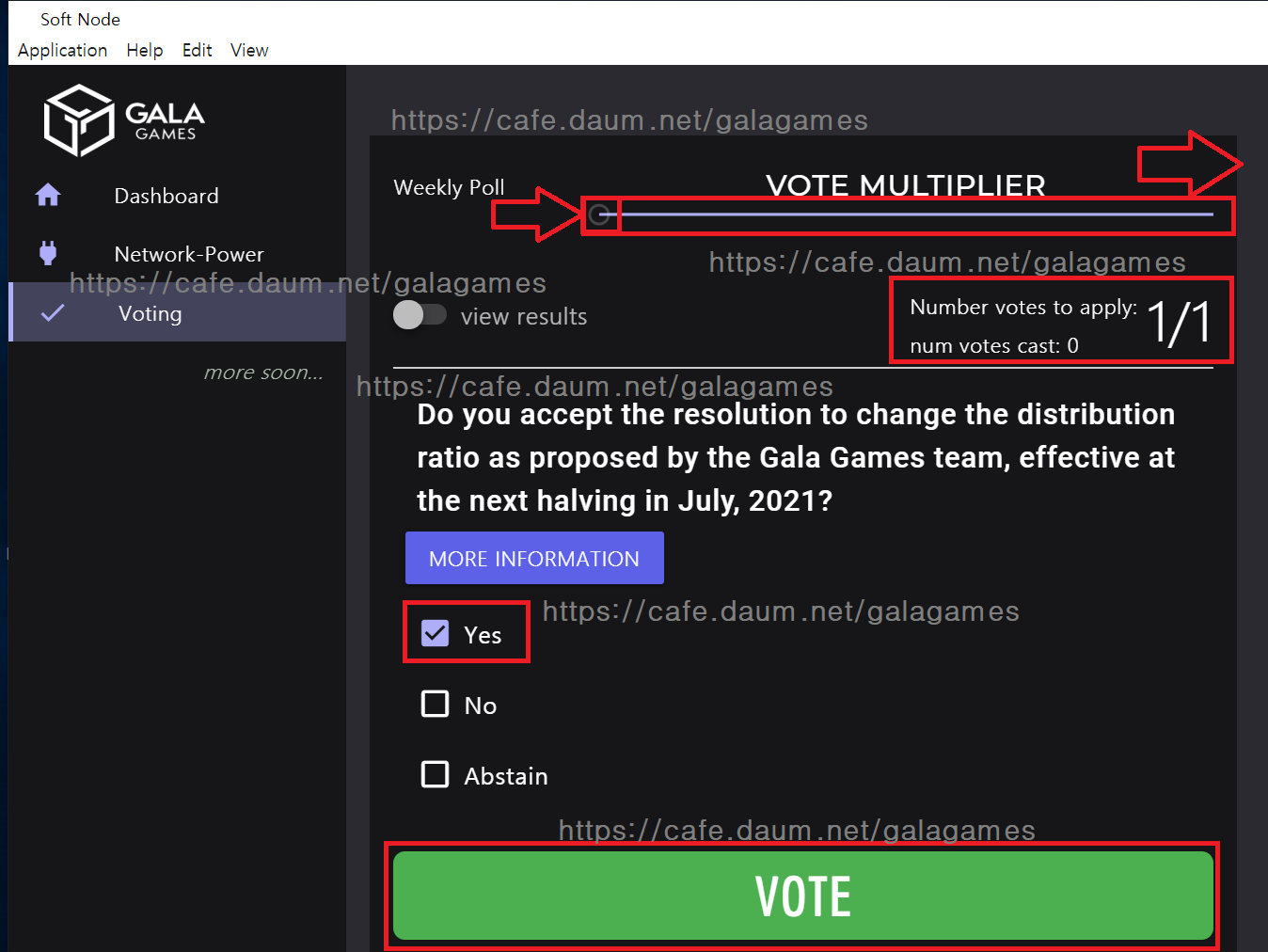 참고로 Yes를 하면 반감기 후 노드운영자들의 갈라코인 받는개수에 변동이 없습니다.