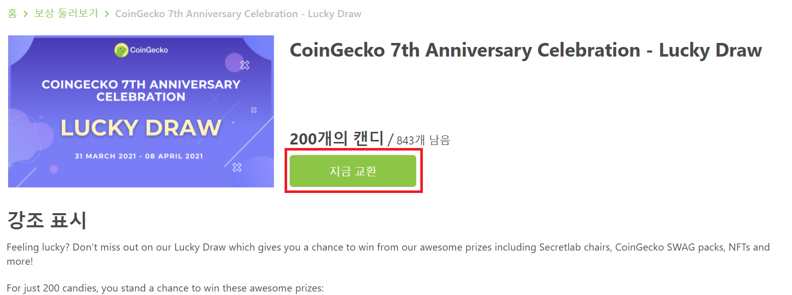 한국시간 2021.04.09 12:00 전에 LUCKY DRAW를 긁으셔야 합니다.