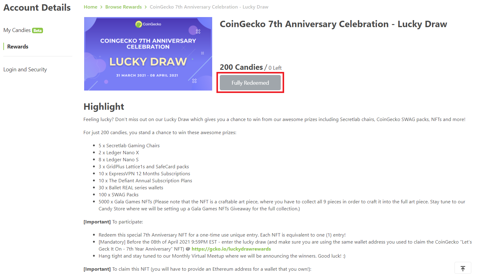 CoinGecko 7th Anniversary Celebration - Lucky Draw