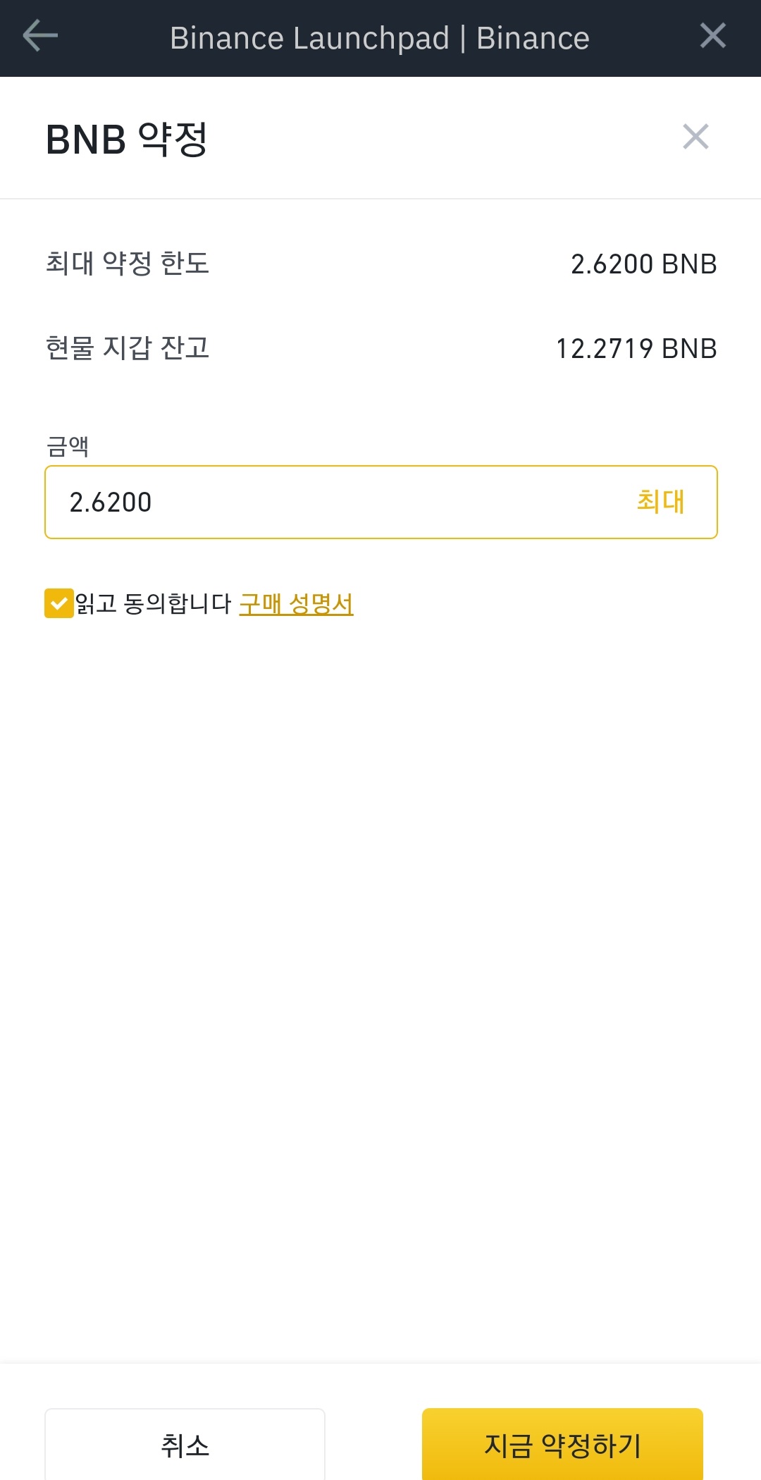 약정된 2.62BNB는