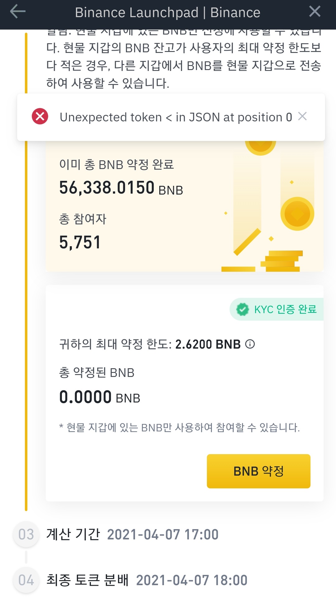 BNB를 청약(?)해야 합니다.