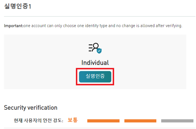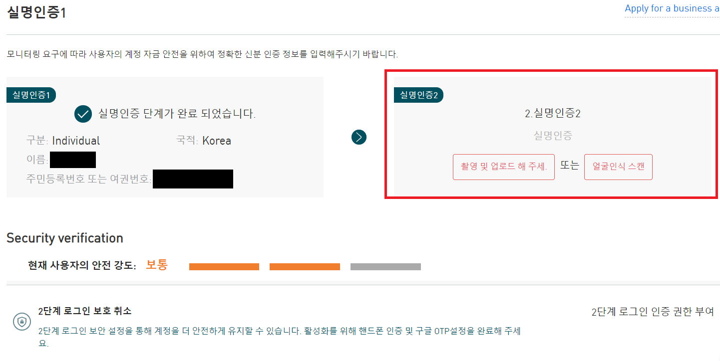 이제 실명인증1이 제출 됐고 심사중입니다.