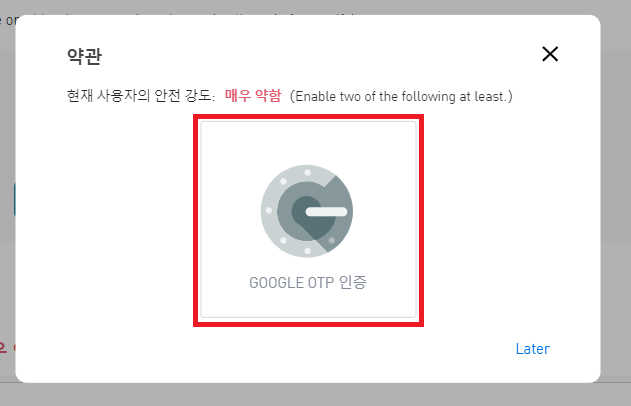 [ 구글 (OTP) 인증 활성화 클릭 ]