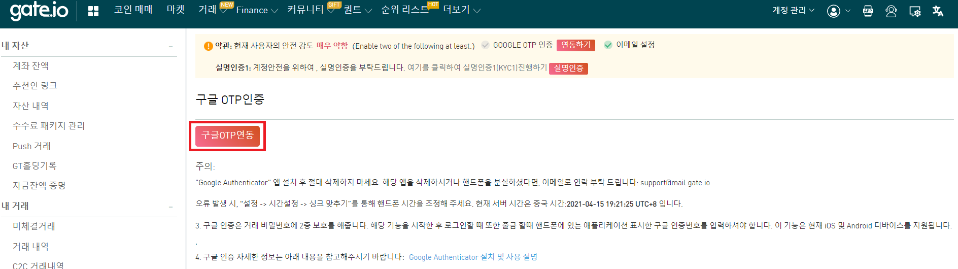 이제 gate.io 1차, 2차 인증을 해줄 것입니다.