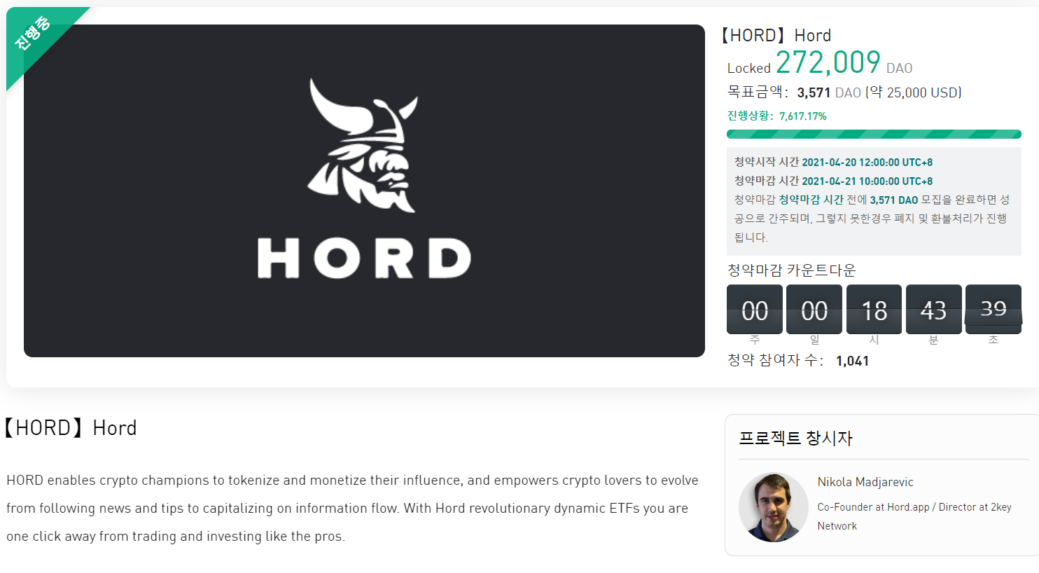 저는 이 중에서 HORD에 청약하도록 하겠습니다.