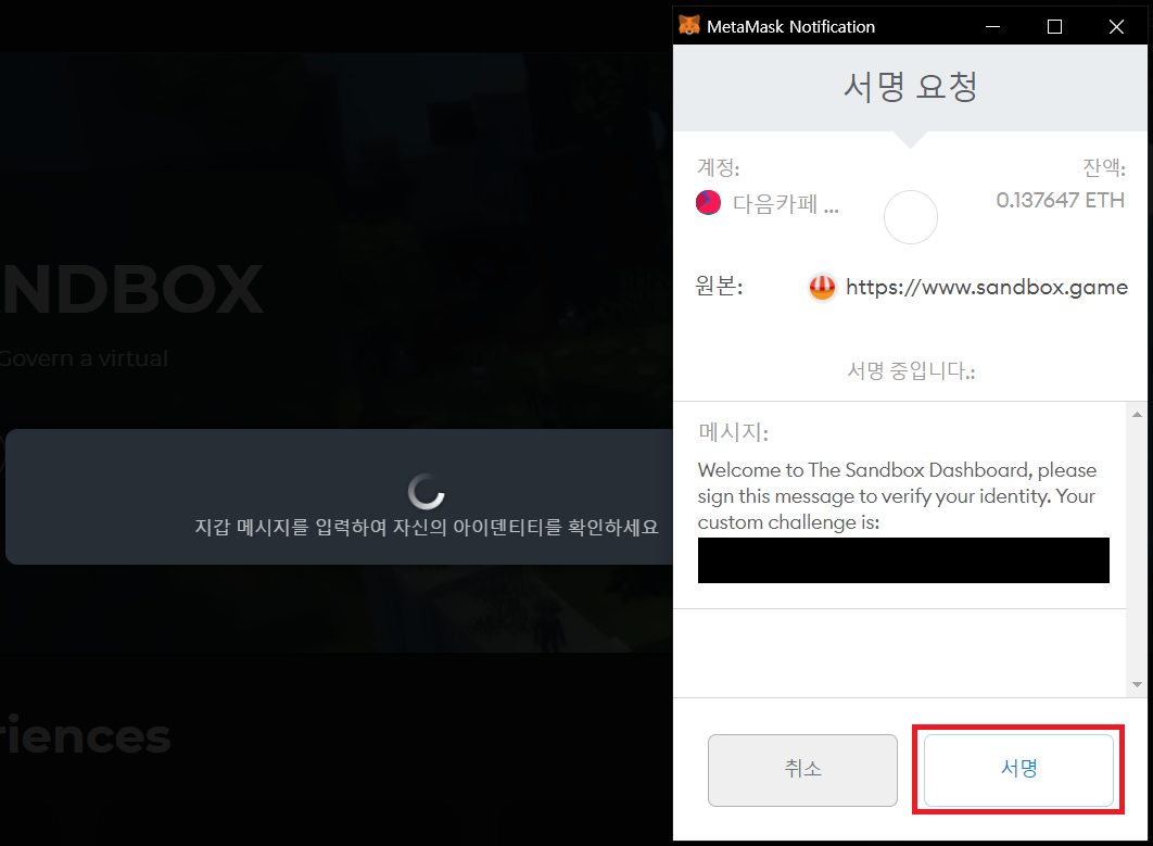 서명 트랜잭션이 발생하는데