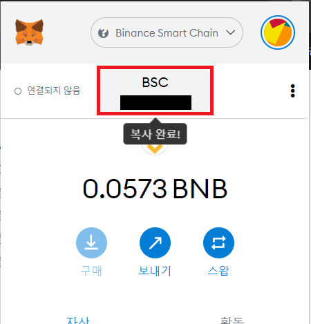 메타마스크 지갑 주소가 자동 복사됩니다.