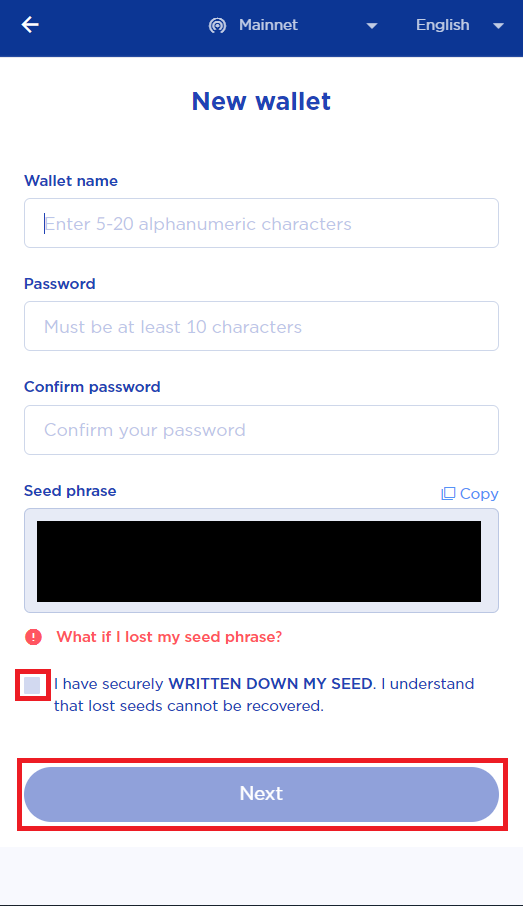 시드 구문(Seed phrase)은 무조건 백업해두세요!