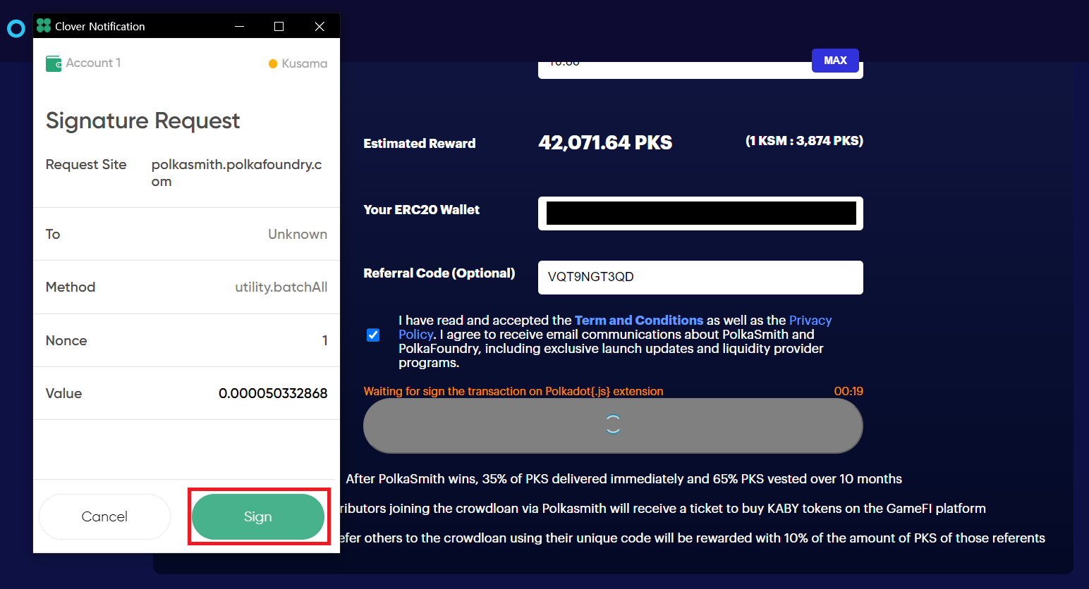 만약 추가적으로 쿠사마를 더 스테이킹하려면