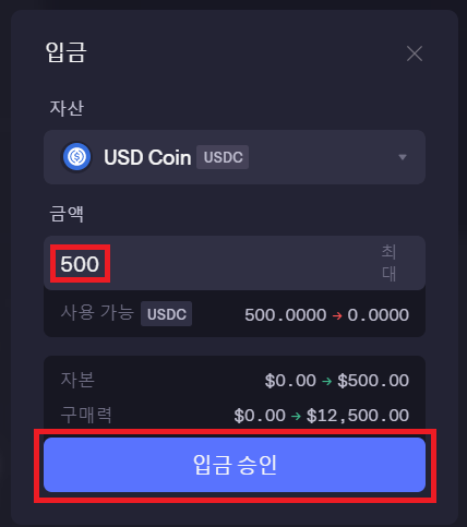 저는 500 USDC를 넣었지만 위에서 볼 수 있듯
