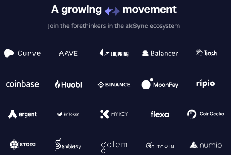 zkSync에는 거대한 업체들과의 에코시스템들이 있고,