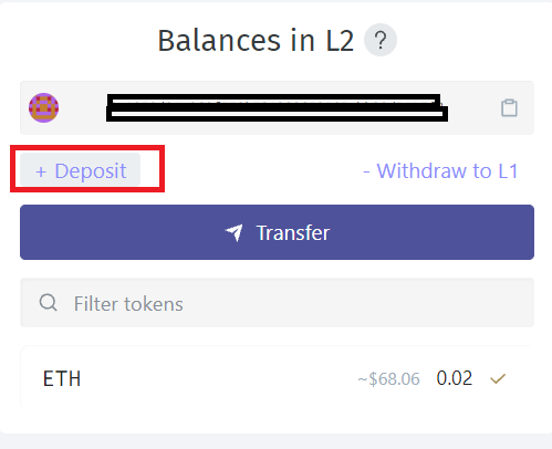 입금한 수량만큼의 ETH가 레이어2 zkSync로