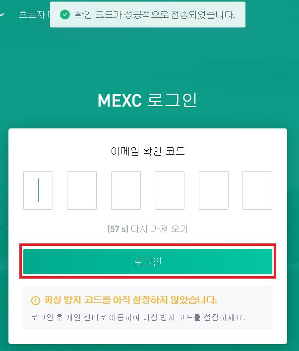 이메일을 확인하여 MEXC 이메일 확인 코드 입력