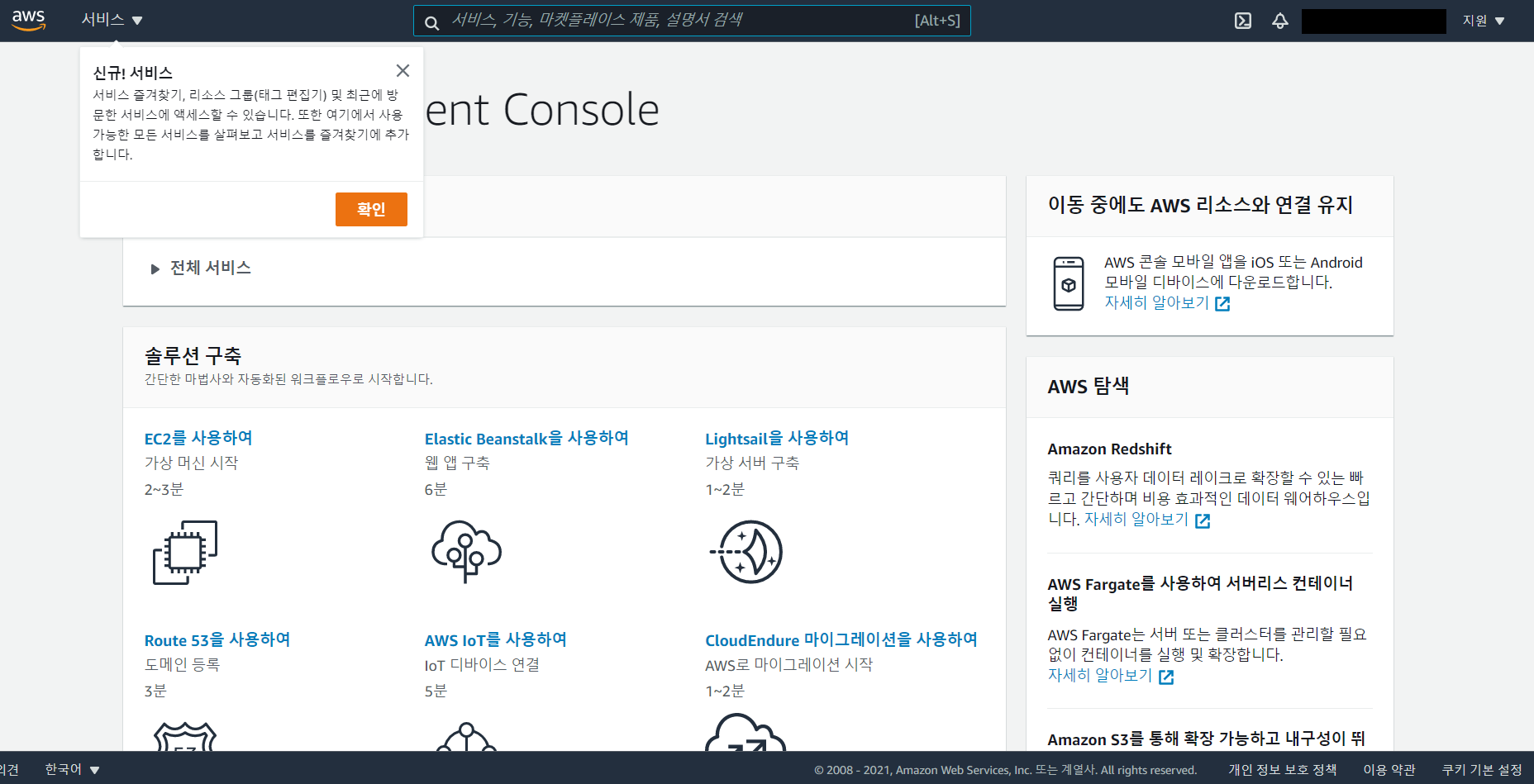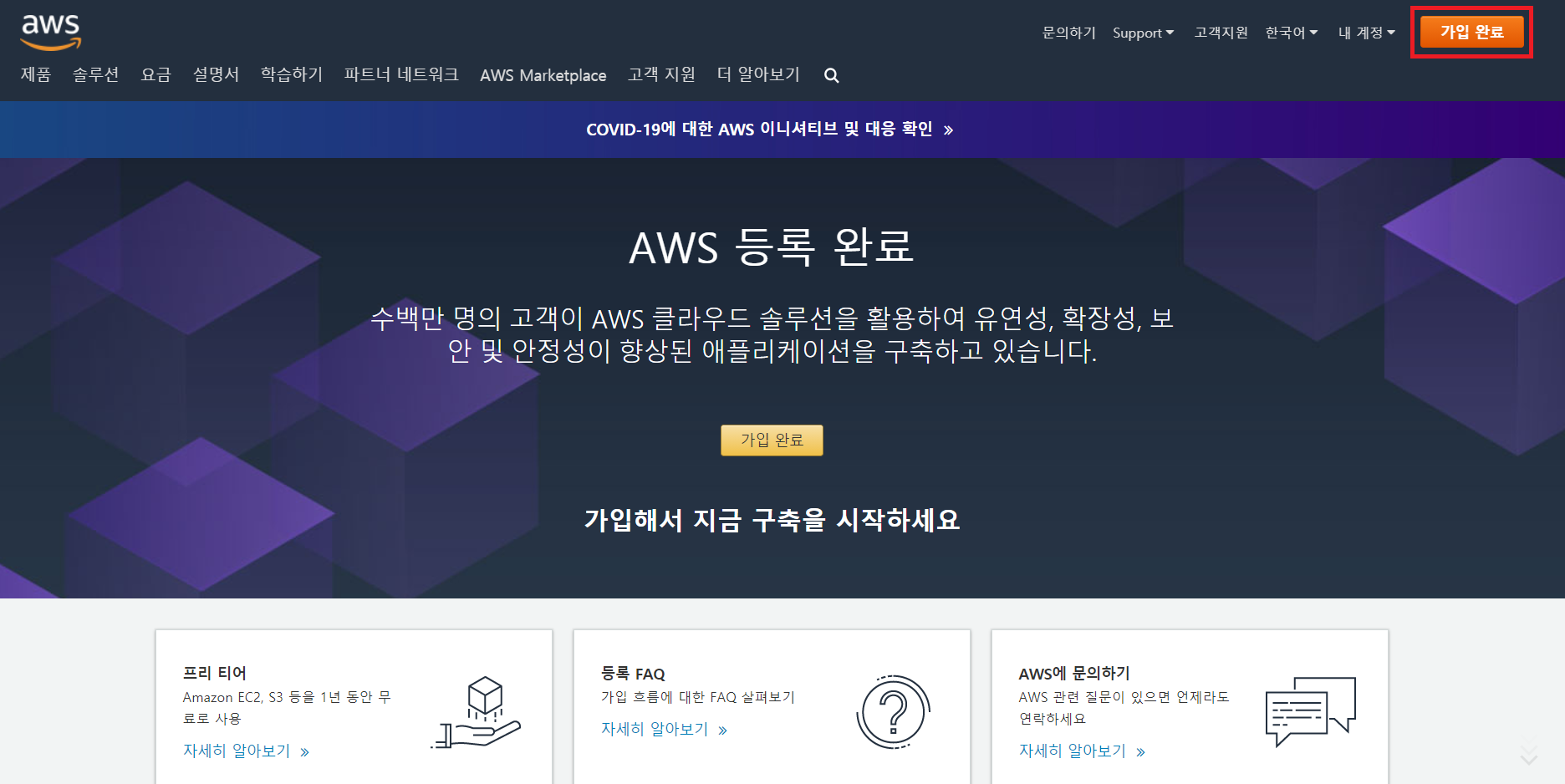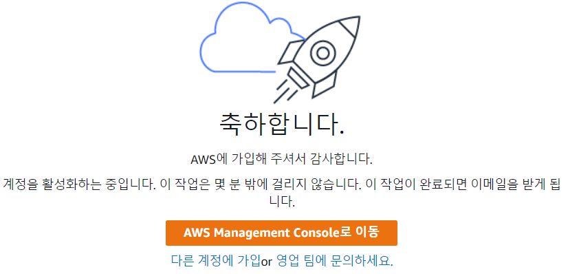 AWS 가입 완료됐습니다.