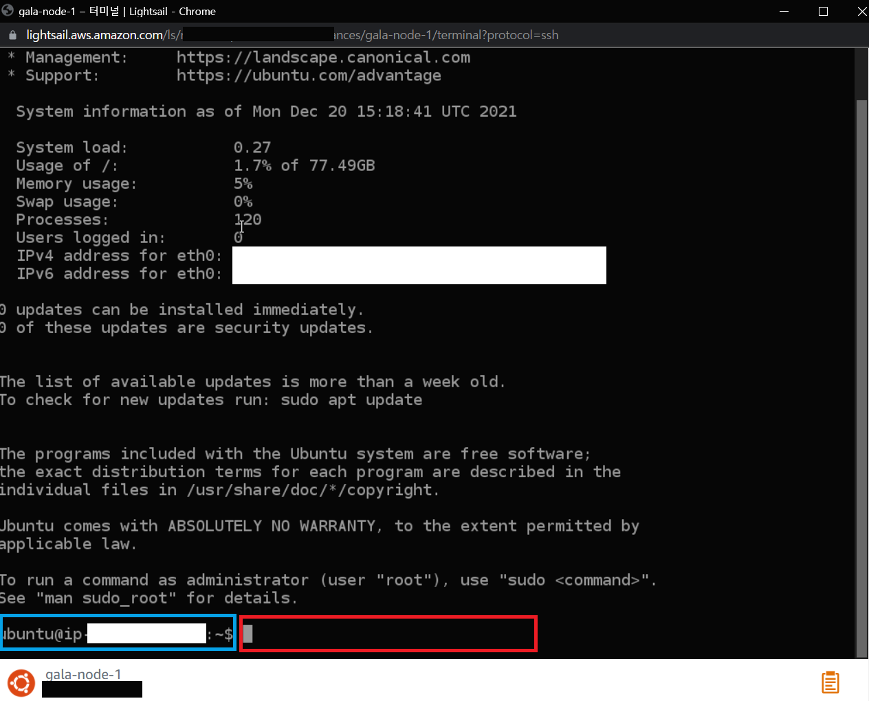 AWS를 통해 갈라 노드가 제대로 설치됐는지