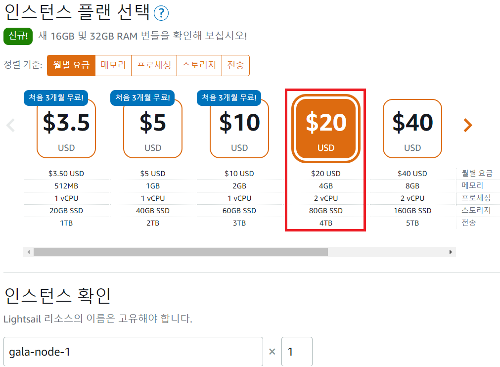 그렇기에 인스턴스 플랜 선택에서