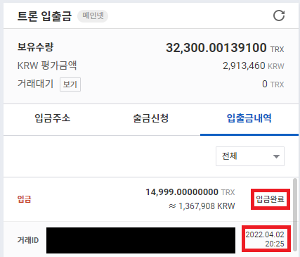 업비트에 20시 25분에 입금됐다고 표기되는데