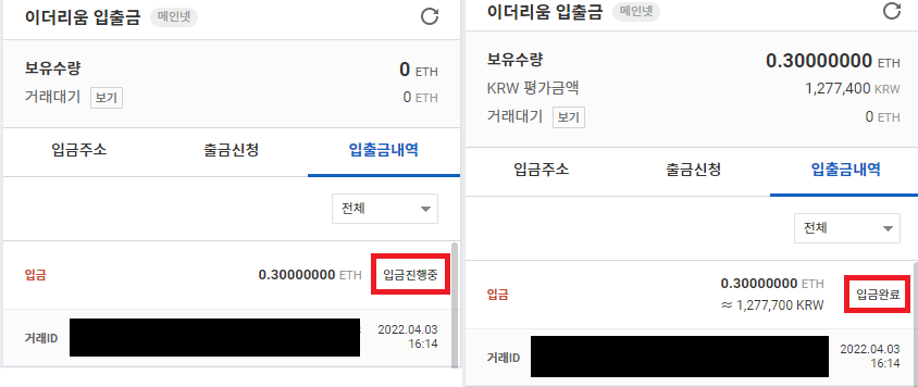 이제 100만원 이상 입금, 출금을 알아봅시다.