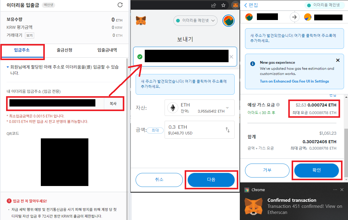 메타마스크로 출금이 되는것을 볼 수 있습니다.