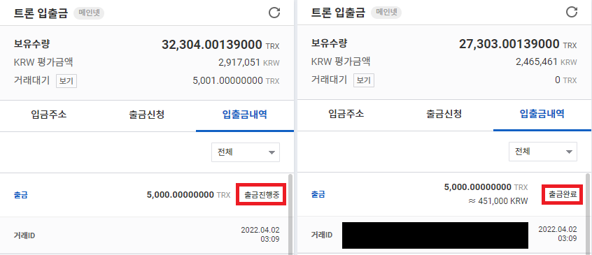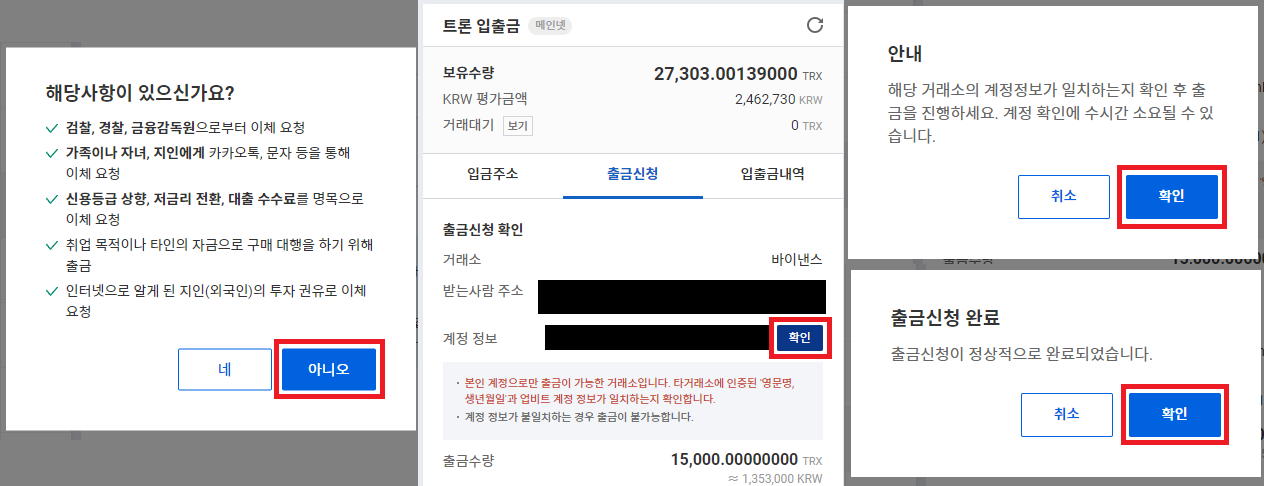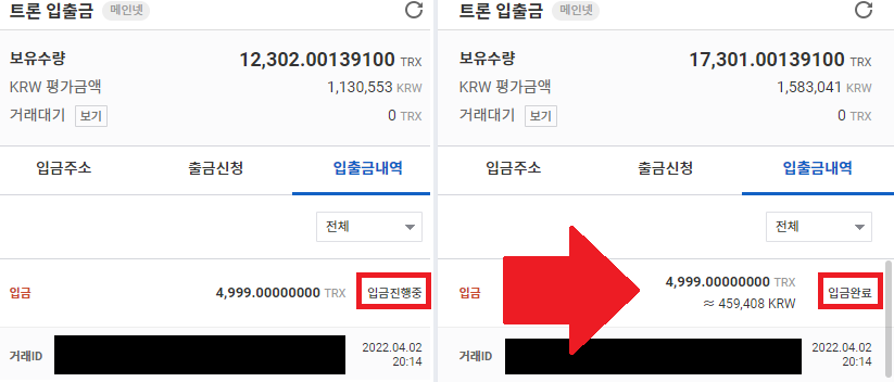 바이낸스에서 업비트로 코인 전송 성공했지만