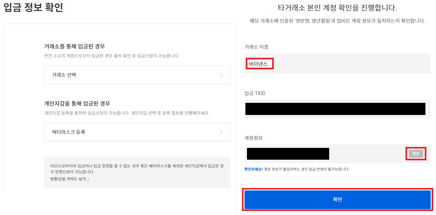 트래블룰을 준수하지 않거나 출처가 불분명한 입근 건 등 입금 반영이 불가한 입근 건의 반환을 위해서는 복잡한 반환절차 및 오랜 시간이 동반될 수 있다고 합니다. 참고하시길 바랍니다.!