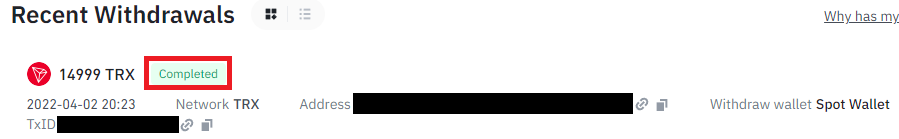바이낸스에 4시 38분에 입금된 것을 볼 수 있다.