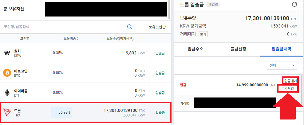업비트 로그인 - 입출금 - [ 추가 확인 클릭 ]