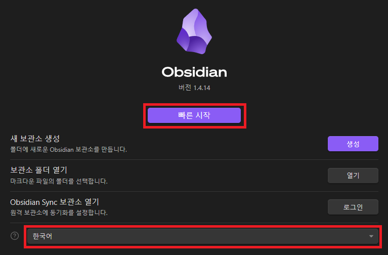 그러면 옵시디언 처음 실행할때 보였던 화면이 다시 보입니다.