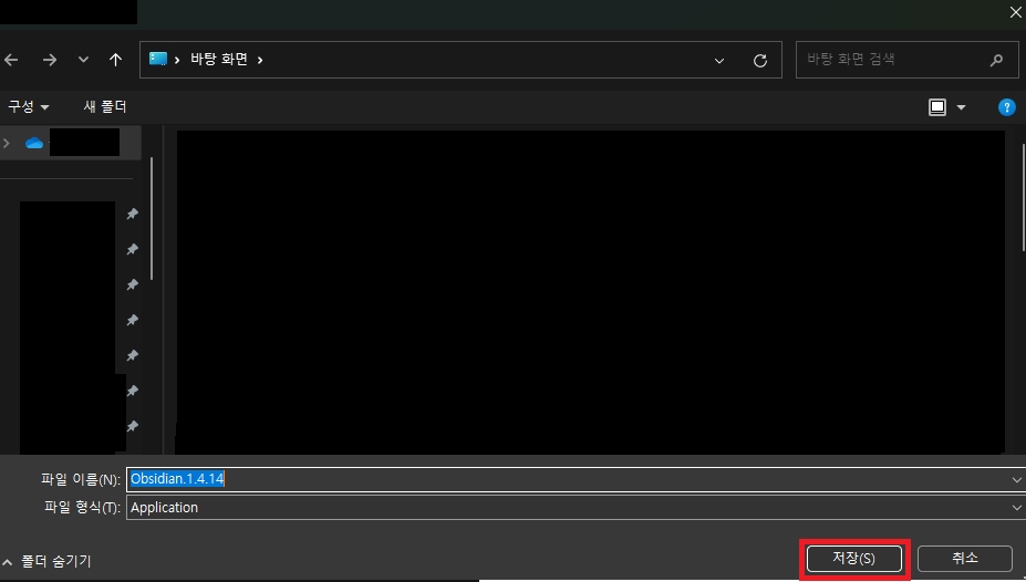 옵시디언 설치 파일을 저장할 위치 선택 후 [ 저장 클릭 ]