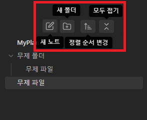 - 새 노트(파일) : 새 노트(파일)를 생성합니다.
