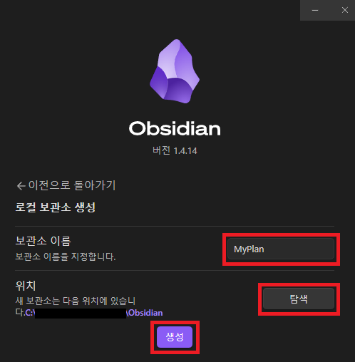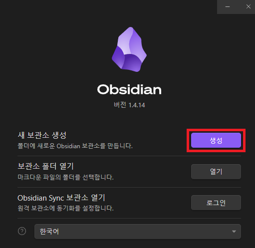 이제 본격적으로 사용할 나만의 옵시디언 보관소를 만들어 봅시다.