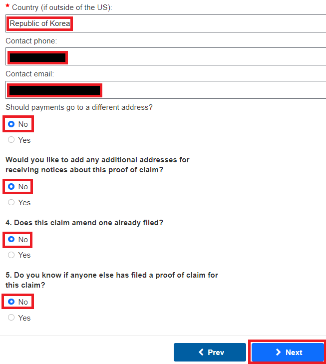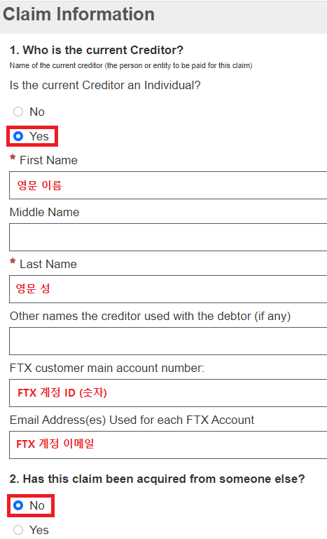 2. Has this claim been acquired from someone else? 이 부분은 다른 사람의 클레임을 대신해주고 있습니까?와 비슷한 의미입니다. No를 클릭하면 됩니다.