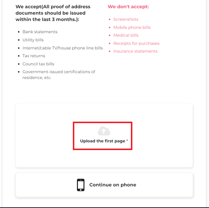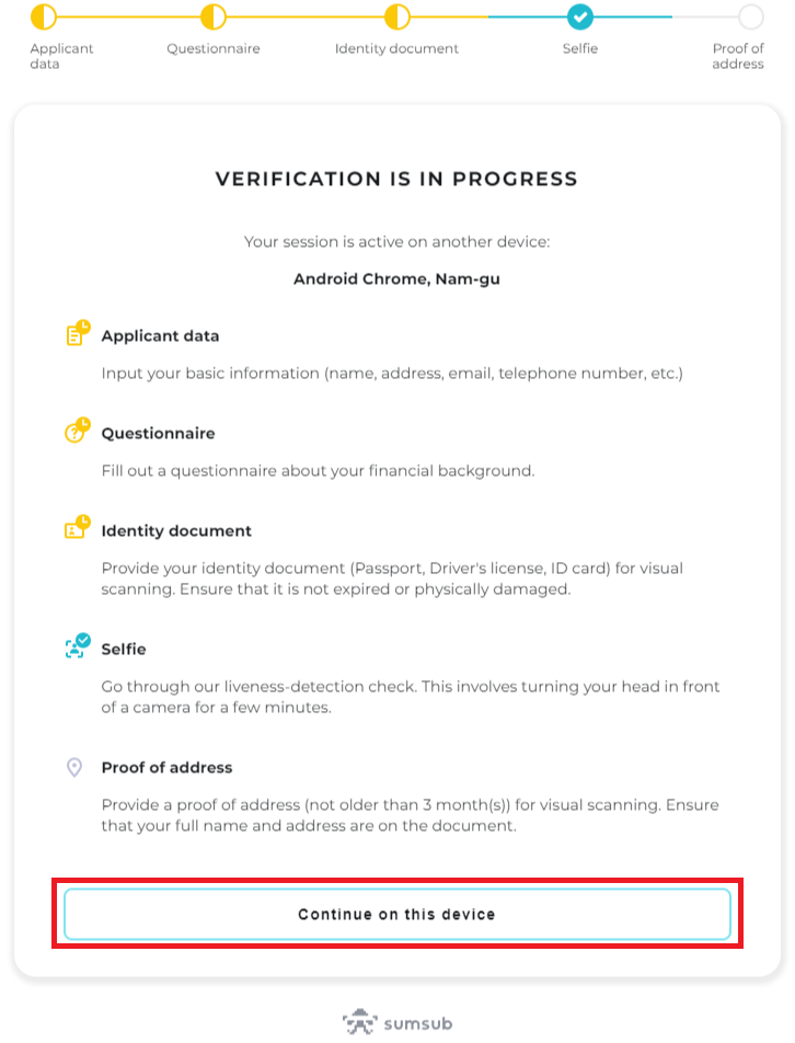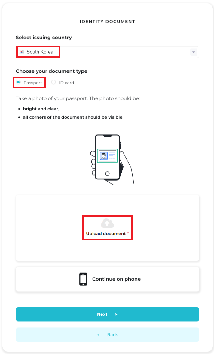 KYC를 진행하기 위해서는 여권 및 증빙 서류가 필요합니다.