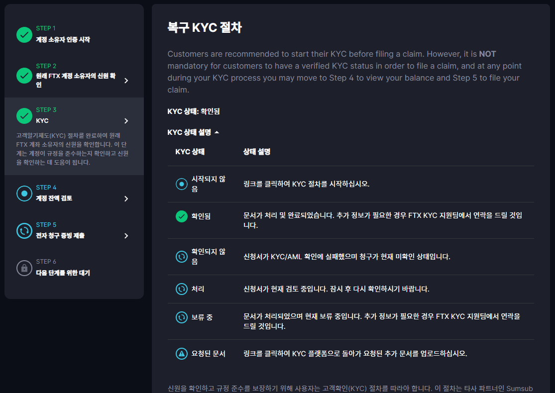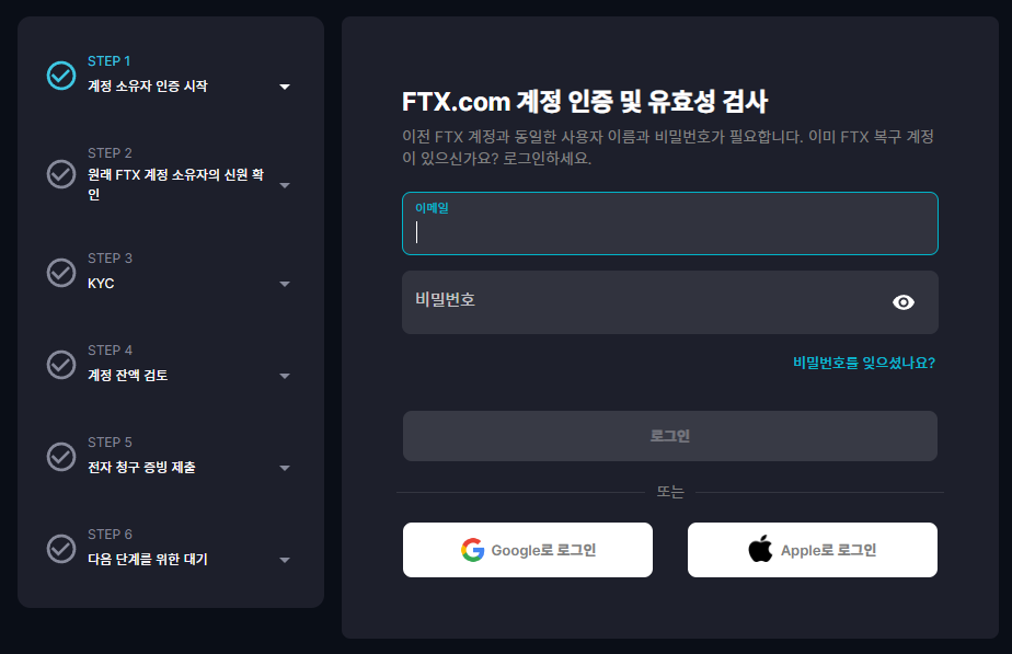 하지만 현재 FTX 클레임 공식 사이트가 오픈되어 모든 고객들이 계정 소유자임을 인증하고 본인 자산을 확인한 뒤 청구 증빙을 제출할 수 있게 되었습니다.