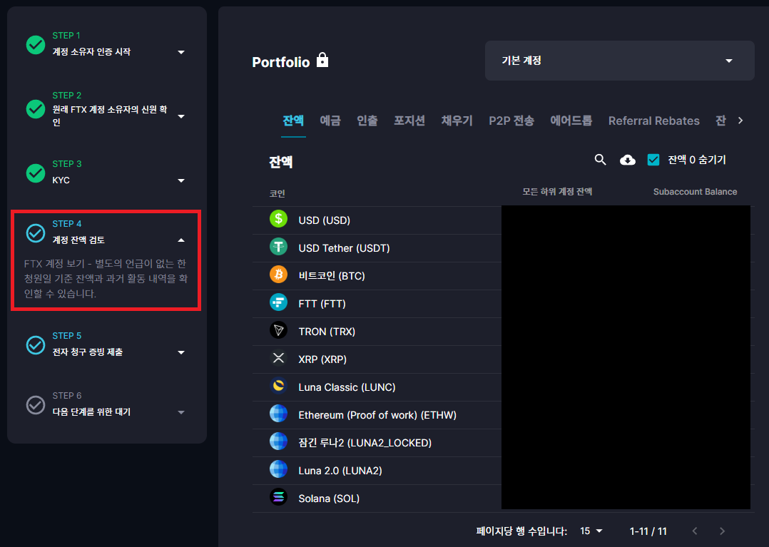4) FTX 계정 잔액 검토