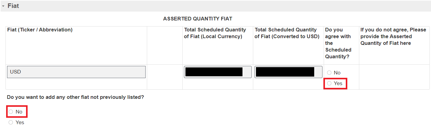 Loaned Fiat : 여러분이 빌린 법정화폐가 있는지 묻는 것입니다.